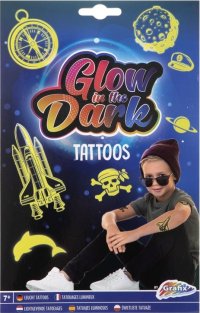 Sada dětských tetování zářících ve tmě obsahující 2 listy/archy o rozměrech 20x13 cm