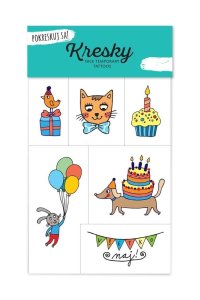 Set obsahuje více než 100 barevných tetování různých velikostí i motivů a sešit ke kreslení.