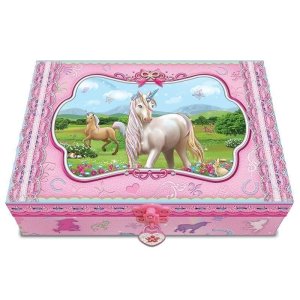 Tato kazeta s hrací skříňkou je stylizovaná na šperkovnici a bude ideálním místem pro uložení pokladů každé dívky.