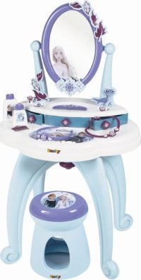 Robustní toaletní stolek se stoličkou a s velkým otočným zrcadlem je navržen v oblíbených barvách ledové královny Elsy a její sestry Anny.