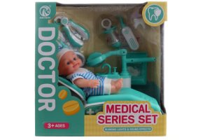Zubařská sada s panenkou. Sada obsahuje panenku o velikosti cca 20 cm, zubařské křeslo a doplňky.