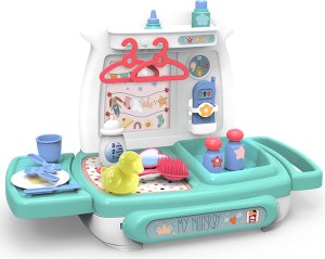 Sada péče o miminko obsahuje vše potřebné, co mladá maminka potřebuje. sada obsahuje: 16 příslušenství k péči o vaše dítě (hřeben se zrcátkem, lahvičku na pití, příbor, telefon a mnoho dalšího..)