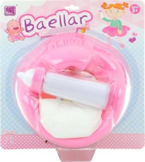 Doplňky pro panenku 30 cm. Balení obsahuje látkovou zavinovačku, plastový dudlík, plastovou lahvičku a plenku.