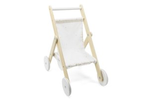 Dětský moderní kočárek, ve kterém se panenkám nebo plyšákům ihned zalíbí.