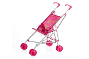 Sportovní kočárek na panenky, otočné přední kolo, pro panenky do 46 cm, úložný prostor, výška rukojeti 55 cm.