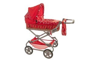 Kočárek pro panenky obsahuje úložný protor vespod kočárku a tašku na nezbytnosti pro malé maminky.Velikost: 58 x 36 x 62,5 cm, v krabici.Vhodný od 3 let.