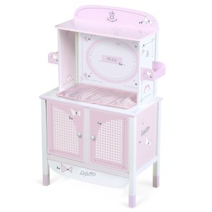 DeCuevas 54846 Dřevěná šatní skříň pro panenky s hracím centrem NIZA 2022 patří do stejnojmenné něžně růžové kolekce NIZA která je novinkou roku 2022 a nabízí krom různých druhů kočárků i nábytek pro …