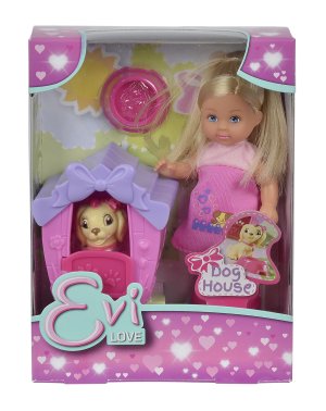 Panenka Evička má psího mazlíčka, který dostal novou boudu.