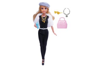 Panenka s kožichem a doplňky. Velikost 29 cm.