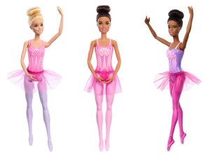 Panenky Barbie® baletky potěší děti odnímatelnými tutu sukýnkami pro kreativní hraní s příběhem! Každá módní panenka má na sobě živůtek s květinovým dekorem a baletní botičky „en pointe“ na špičce.