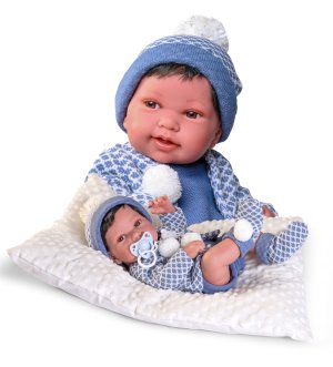 Ručně vyrobená realistická španělská panenka s celovinylovým tělem a vlásky po celé hlavě.