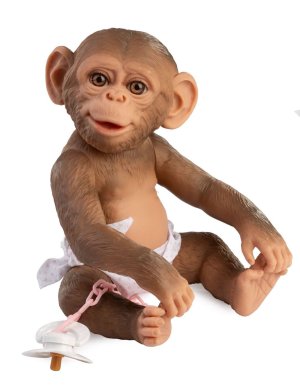 Veselé a roztomilé opičí miminko bez zvuku s vinylovým tělem s možností koupání, na kterém je zachycen věrohodně každý detail tohoto zvířecího mláďátka včetně různých záhybů, kromě pohlaví.