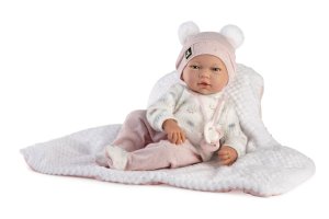 Miminko bez zvuku s vinylovým tělem s možností koupání, na kterém je zachycen doslova každý detail dětského tělíčka včetně roztomilých miminkovských faldíků a pohlaví.