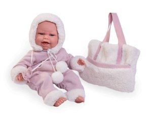 Miminko bez zvuku s vinylovým tělem s možností koupání, na kterém je zachycen doslova každý detail dětského tělíčka včetně roztomilých miminkovských faldíků a pohlaví.