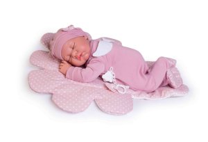 Ručně vyrobená realistická španělská panenka s celovinylovým tělem a vlásky po celé hlavě.