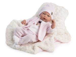 Mrkací a plačící, ručně vyrobená španělská panenka - miminko, reagující na magnetický dudlík.