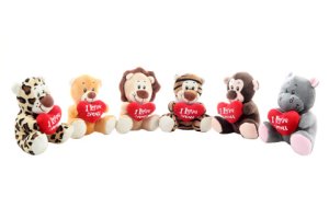 Plyšové divoké zvířátko se srdíčkem o rozměrech cca 14x13x11 cm. 6 druhů - dodáváme dle skladové dostupnosti.