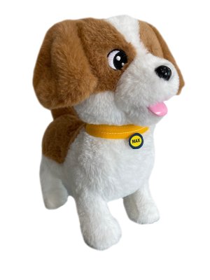 Interaktivní pejsek Max umí si sednout, chodit, zvedat pacičku, vystrkovat jazýček, štěkat… Reaguje na dotek.