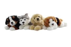 Plyšový pes o velikosti cca 23 x 13,5 x 11 cm.