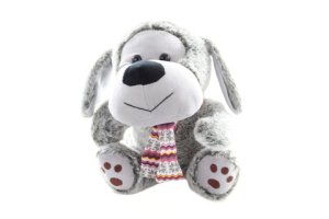 Plyšový pejsek o rozměrech 18x25x16 cm.