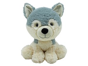 Plyšový pes husky o velikosti cca 13 x 10 x 7 cm.
