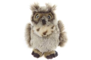 Plyšová sova o velikosti cca 18 x 12 x 12 cm.