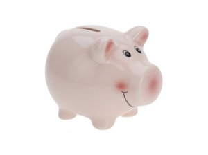 Pokladnička ve tvaru prasátka o rozměru 180×150×130 mm.