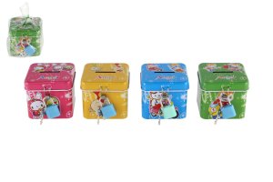 Plechová pokladnička *růžová, zelená, modrá, žlutá