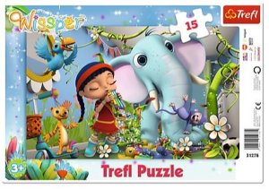 Dětské deskové puzzle (dílky se skládají přímo na přiloženou podložku s rámečkem).