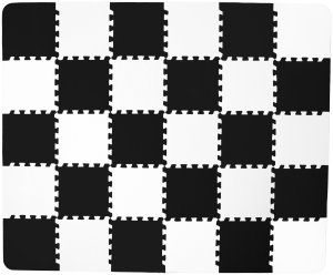 Pěnový koberec s černo-bílými dílky pro děti již od 10 měsíců.