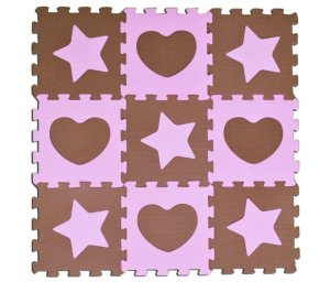 Pěnové podlahové puzzle s vroubkovaným povrchem a vyjímatelnými částmi, pro děti již od 10 měsíců díky velkým dílkům, které dítě nemůže vdechnout či spolknout.