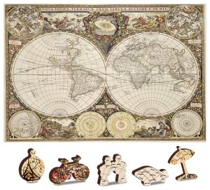 Dřevěné laserem řezané puzzle se speciálně tvarovanými prvky.