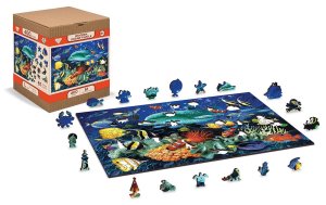Dřevěné oboustranné puzzle TREFL z prémiové řady Wood Craft Origin se speciálně tvarovanými dílky, které jsou inspirované Vánocemi.