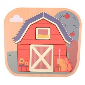 Dřevěné, vícevrstvé puzzle s motivem farmy.