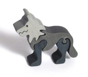 Dřevěné laserem řezané puzzle se speciálně tvarovanými prvky.