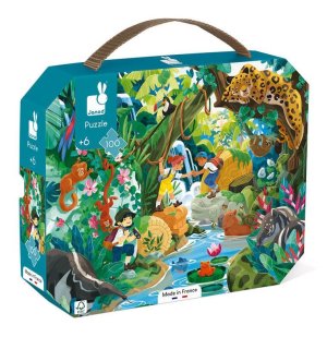 Puzzle v kufříku JANOD s motivy džungle - Prozkoumej džungli a najdi v ní se svými přáteli ukrytý chrám Inků!