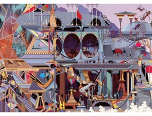 Puzzle s motivem kreslených světadílů a států Marie Rabinky od anglického výrobce GIBSONS.