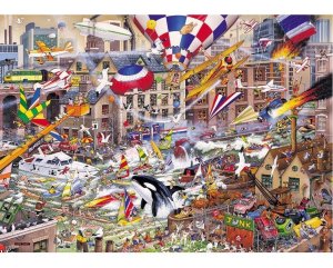 Puzzle s motivem kreslených památek Londýna Marie Rabinky od anglického výrobce GIBSONS.
