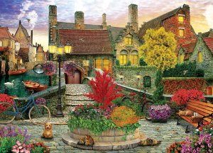 Raznice puzzle COBBLE HILL nekopíruje standardní mřížku, rohy a hrany dílků nejsou vždy v jedné ose a dílky mají neobvyklý tvar.