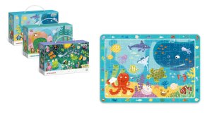 Progresivní puzzle s různou obtížností - 3 puzzle s 20 - 50 dílky, s vyšším počtem dílků se zmenšuje jejich velikost.