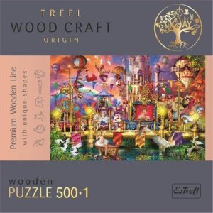 Dřevěné oboustranné puzzle TREFL z prémiové řady Wood Craft Origin se speciálně tvarovanými dílky ve tvaru slavných budov, dopravních prostředků nebo třeba zvířat.