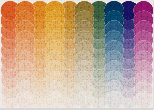Raznice puzzle COBBLE HILL nekopíruje standardní mřížku, rohy a hrany dílků nejsou vždy v jedné ose a dílky mají neobvyklý tvar.