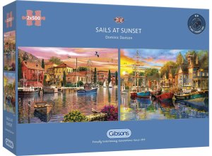 Dvě puzzle v krabici s motivem plachetnic autora Dominica Davisona od anglického výrobce GIBSONS.