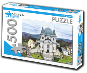 Puzzle v plechové krabičce ve tvaru rodinného statku.