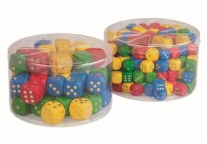 Dřevěné kostky různých barev o velikosti 25 x 25 x 25 mm slouží nejen ke klasické stolní hře.