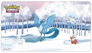 Hrací podložka Pokémon. Vrchní část je z měkké tkaniny a chrání tak karty během používání.