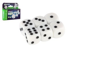 Hrací kostky bílé barvy, s kterými si zahrajete mnoho zajímavých a zábavných her.