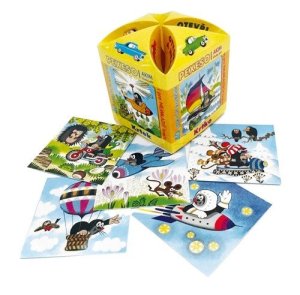 pevný karton s lesklou vodoodpudivou povrchovou úpravou, velikost kartiček 4 x 4 cm (š x d), na pexesech u titulního obrázku umístěn box k vystřižení pro možnost vložení vystřižených...