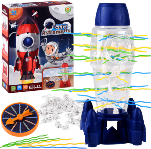 Zábava s astronauty! Hra spočívá v umístění tyčinek do otvorů rakety.