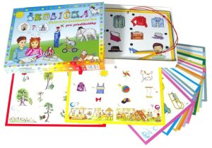 Obsahuje 16 listů s mnoha obrázky, mezi nimiž děti hledají souvislosti.
